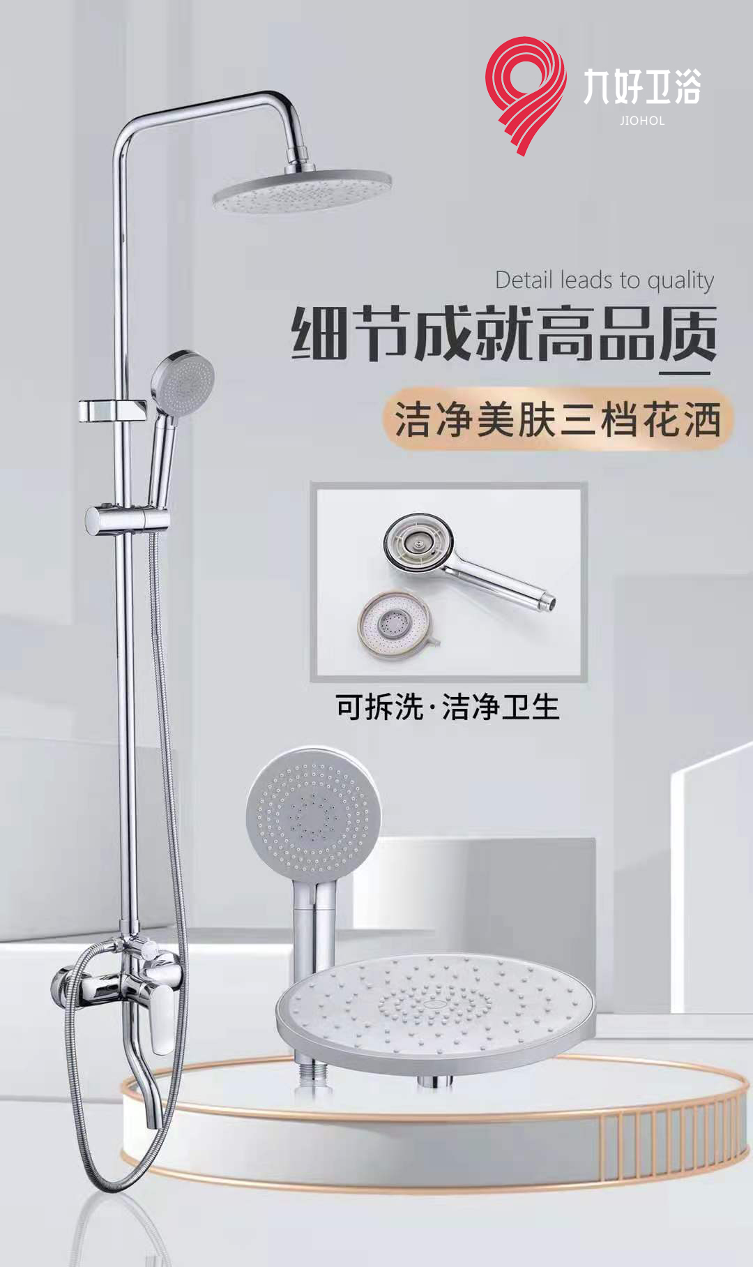 欧洲杯期间巧逢父亲节,父亲们在观看欧洲杯之前,先来一场沐浴,让身心焕然一新。九好卫浴新款花洒TC-F8099采用新一代黄铜一体铸造,出水孔均采用无毒硅胶出水颗粒,三功能手持花洒带来沐浴极致体验;手持花洒握感舒适,拥有气泡水、花洒水、按摩水三种出水形式,让父亲们随心所欲,享受活力。